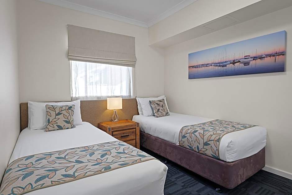 Bedding configuration: 1 Queen and 2 singles.